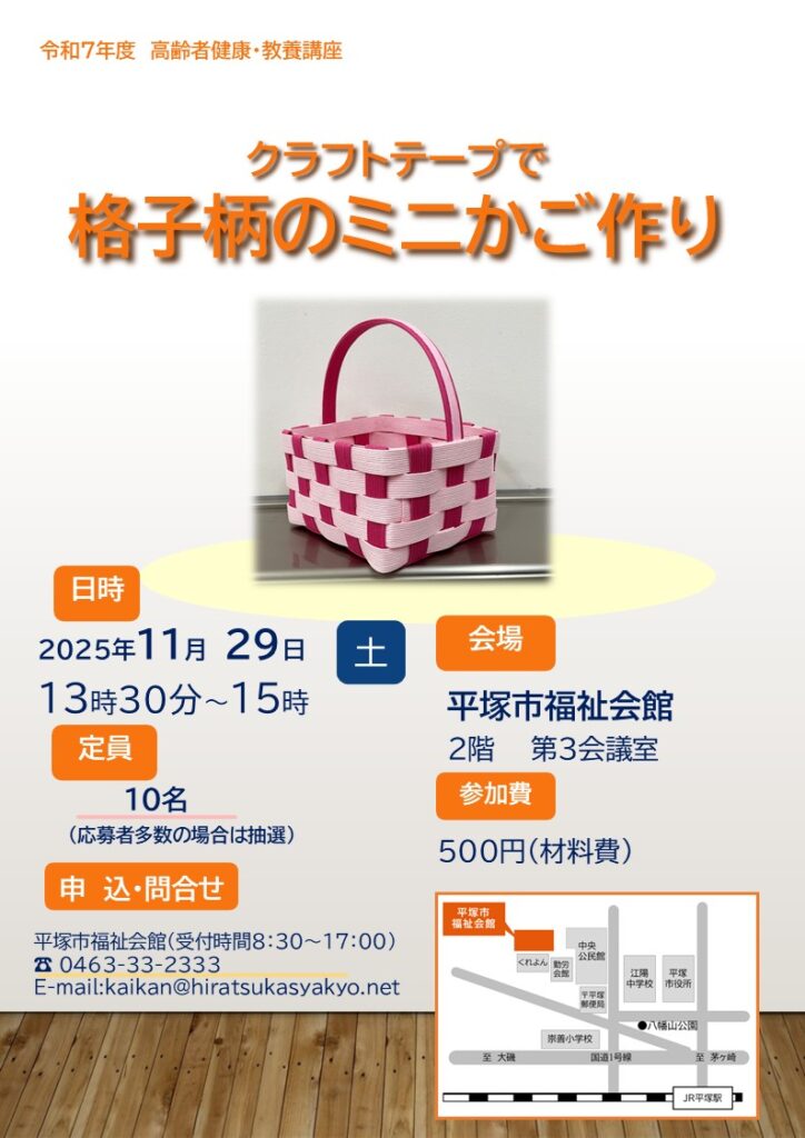 手芸用クラフトテープを使ってかわいいミニカゴを作成する講座です。趣味を持つことでより充実した毎日を送るきっかけとしてください。